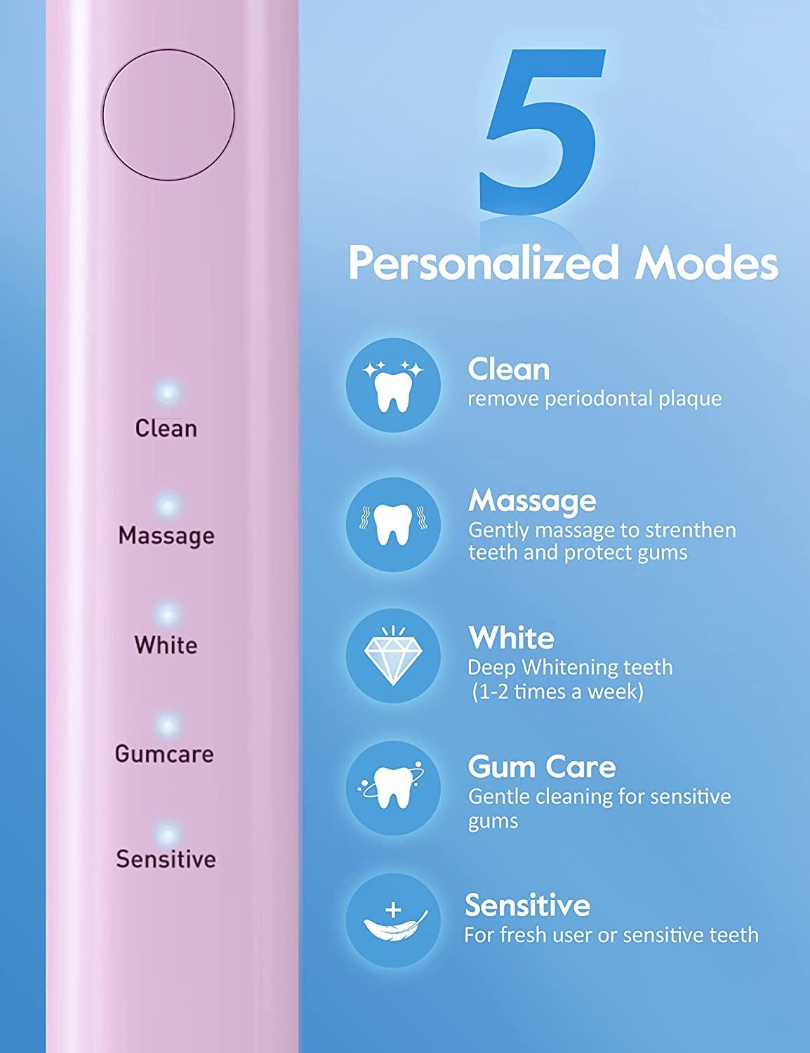 Sonic Electric Toothbrush For Adults And Kids Bafovy Rechargeable Electric Power Toothbrushes With 6 Brush Heads 5 Modes 2 Min Smart Timer And Wireless Fast Charging Pink
