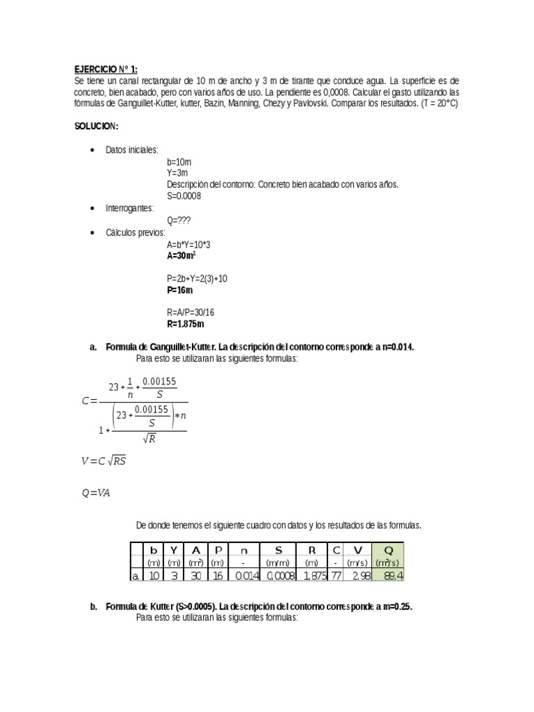 Ejercicio De Hisdraulica De Canales Pdf Ensenanza De Matematica Naturaleza